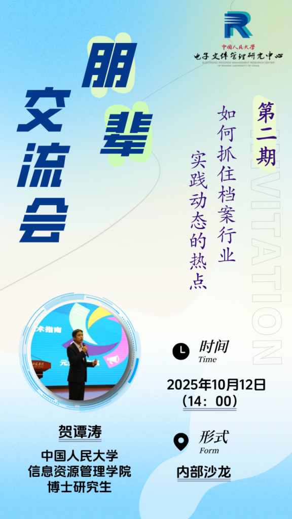 朋辈交流会旨在推动学生研究员之间交流与互动,通过分享、问答等方式加深对某一议题的认知与理解,以朋辈互助、以老带新等形式拉近学生研究员之间的距离,碰撞知识与智慧的火花,促进电子文件管理研究共同体的发展。