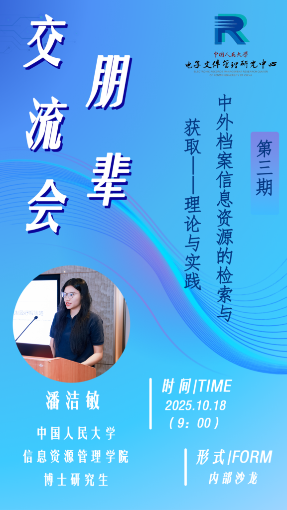 朋辈交流会旨在推动学生研究员之间交流与互动,通过分享、问答等方式加深对某一议题的认知与理解,以朋辈互助、以老带新等形式拉近学生研究员之间的距离,碰撞知识与智慧的火花,促进电子文件管理研究共同体的发展。
